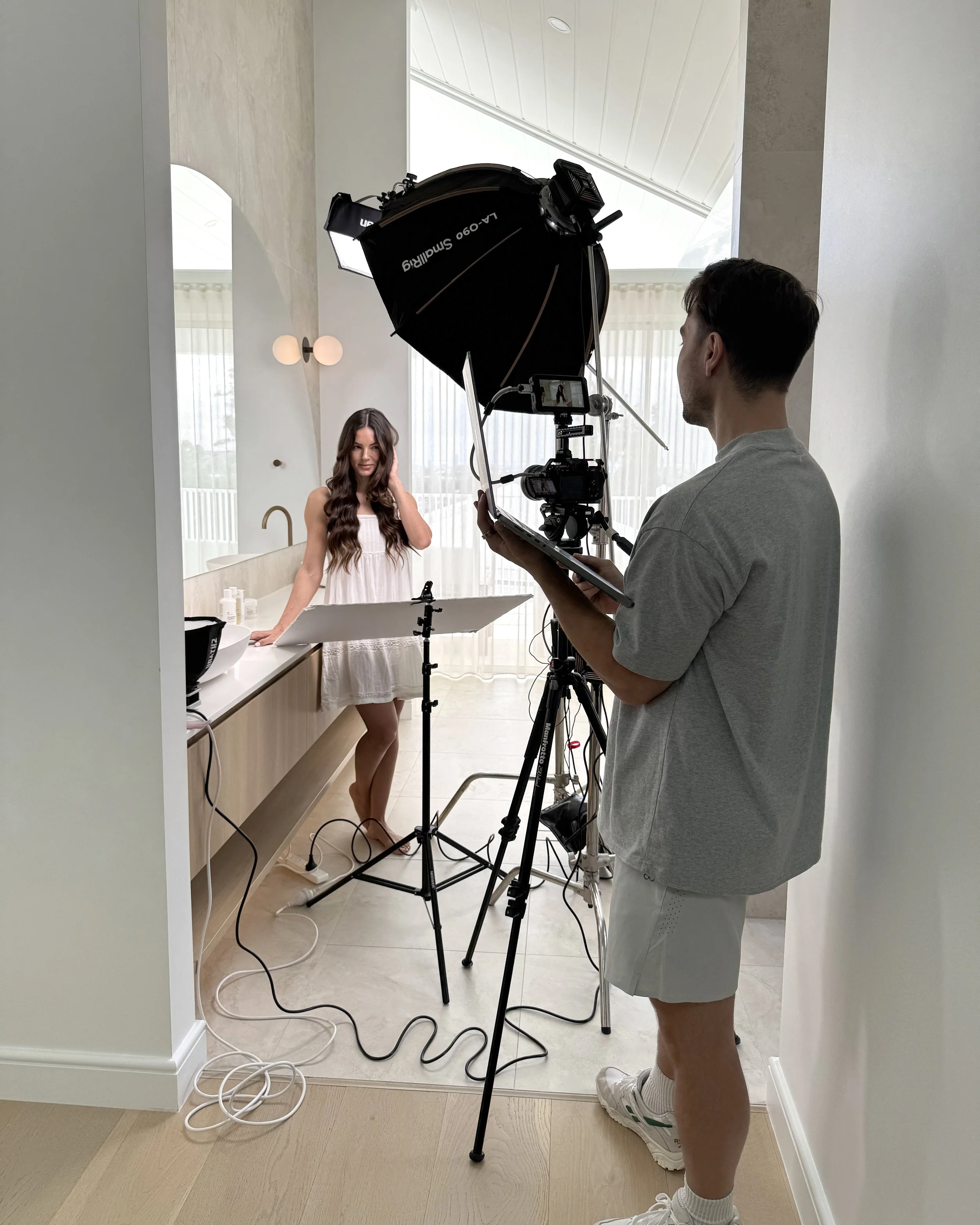 We shoot both in the same session, under the same creative direction. One set of pre-production covers everything. And because there are two of us directing on set, one on video, one on stills, we cover more ground in a single day than most teams do in two.